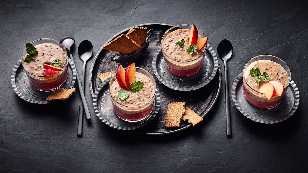 Kreieren Sie aus frischen Pflaumen, Pflaumensaft und Lebkuchengewürz ein herbstliches veganes Dessert. Perfekt für die kältere Jahreszeit.