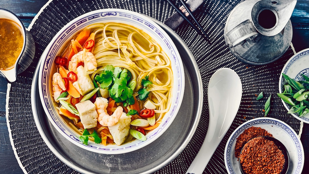 Eine kräftige Brühe, die Sie mit frischen Zutaten nach Belieben erweitern und mit Fischfilet und Garnelen verfeinern – unser Pho-Suppen-Rezept folgt nicht nur vietnamesischer Kochtradition, es hilft Ihnen zudem, Aromen neu zu vereinen.