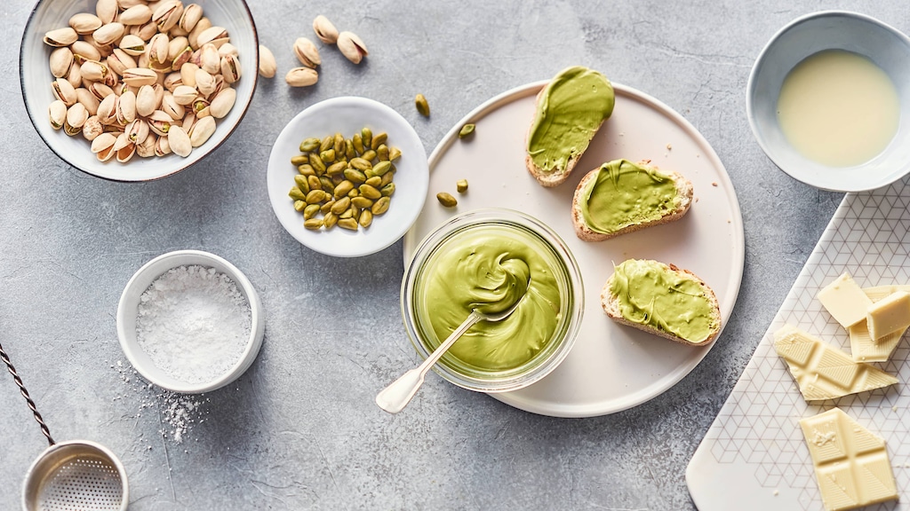 Kinderleicht herzustellen ist diese Pistaziencreme: einfach mit dem Mixer oder der Küchenmaschine zu einer feinen, cremigen Konsistenz verarbeiten.