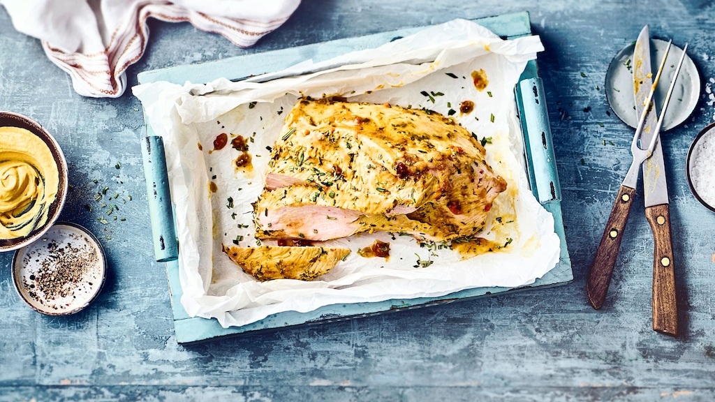 Unsere EDEKA-Ernährungsexpertin Birthe Wulff rät, öfter auf leichtes Geflügelfleisch zurückzugreifen: Im Vergleich zu anderen Fleischsorten ist es fettärmer, enthält weniger Cholesterin und weist einen hohen Eiweißgehalt auf. Informieren Sie sich über Inhaltsstoffe und den richtigen Umgang mit Pute, Huhn und Co. in unserem Wissen über Geflügel-Fleisch. Als leichtere Alternative zum Schweinefleisch wird Geflügel – und gerade das vielseitig kombinierbare Putenfleisch – immer beliebter: Vom asiatischen Puten-Bambus-Curry-Rezept für den exotischen Genuss über den mediterran angehauchten Festtagsschmaus mit junger glacierter Pute bis hin zur Babypute stehen Ihnen zahllose Rezepte zur Verfügung. Der Vorteil unseres Putenbraten-Rezepts: Das Gericht lässt sich schnell vorbereiten und gart dann ohne Ihr Zutun etwa dreieinhalb Stunden im Ofen. In dieser Zeit entfalten sich alle Aromen der verwendeten Kräuter und runden den Geschmack des Fleisches ab. Die Senf-Kräuterkruste des Bratens trägt dazu bei, dass dieser Braten schon bald zum festen Bestandteil Ihres Koch-Repertoires werden könnte.
