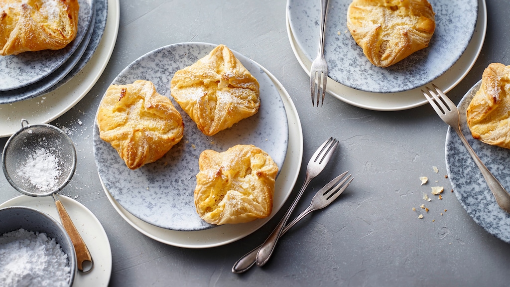Unser Rezept weicht etwas von der Tradition ab. Viele hierzulande bekannte Anleitungen verlassen sich nämlich auf Plunderteig. Dessen Kernzutat: Hefe. So geht der Teig noch ein Stück mehr auf und ist am Ende feuchter – etwa bei unserem Rezept für Bear Claws. Blätterteig, die Basis unserer Quarktaschen, verzichtet dagegen auf Hefe und besitzt eine blättrige, luftige Struktur. Durch das Einreiben mit Ei und Milch erhalten Sie am Ende eine noch knusprigere Oberfläche – für Quarktaschen wie vom Bäcker, die frisch am besten schmecken. Genießen Sie sie also schnellstmöglich, vielleicht sogar noch ofenfrisch und damit leicht warm. Natürlich können Sie aber nicht nur Quarktaschen zubereiten. Wie Sie Blätterteig in der Küche noch verarbeiten, erfahren Sie in unserem Expertenwissen. Zwischen herzhaft und süß haben Sie außerdem die Wahl, wenn Sie sich einmal quer durch unsere Blätterteig-Rezepte probieren. Zwiebelkuchen, Tomaten-Pinien-Tarte, Pastel de Nata, ein dekorativer Blätterteig-Tannenbaum: So finden Sie abwechslungsreiche Blätterteig-Spezialitäten, die ähnlich lecker sind wie unsere Quarktaschen.