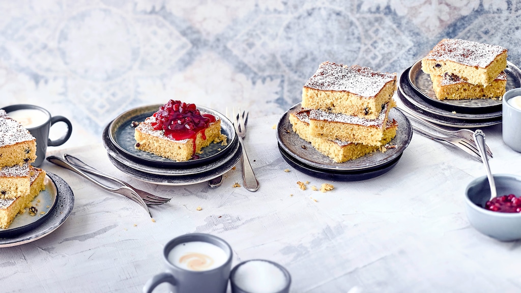 Blechkuchen passt wunderbar zum nachmittäglichen Wochenendkaffee. Als Bereicherung dient dabei jederzeit eine leicht fruchtige Note. Die erhalten Sie, wenn Sie wie nach unserem Rezept für Quittenkuchen Rührteig mit selbst gemachtem Quittenmus vermengen und alles mit Preiselbeerkompott verfeinern.