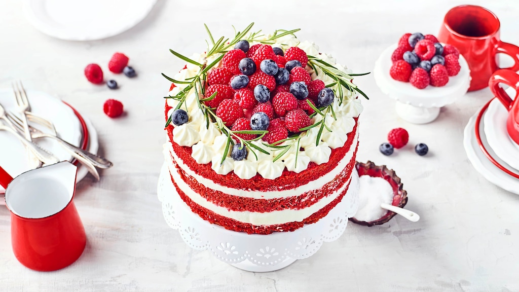 Roter Samt. Red Velvet Cake trägt nicht nur einen mehr als klingenden Namen, sein Geschmack hält locker mit. Backen Sie mithilfe unseres Rezepts eine echt amerikanische Torte mit Schokoladengeschmack und cremigem Frosting.