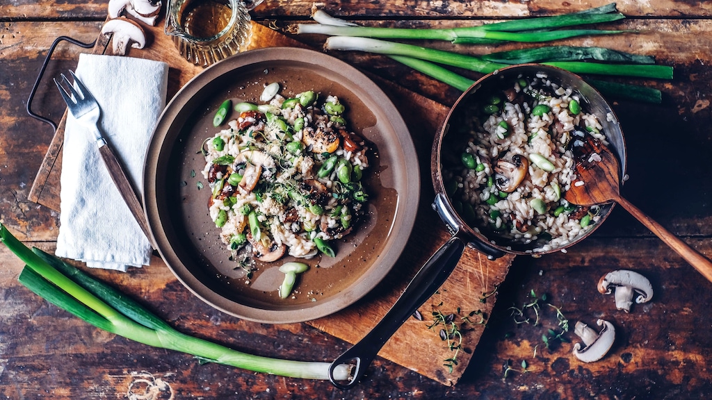 Die Vielseitigkeit von Risotto-Rezepten lässt einen immer wieder neue Varianten ausprobieren: Testen Sie unser Rezept für ein veganes Risotto mit Miso und Frühlingsgemüse.