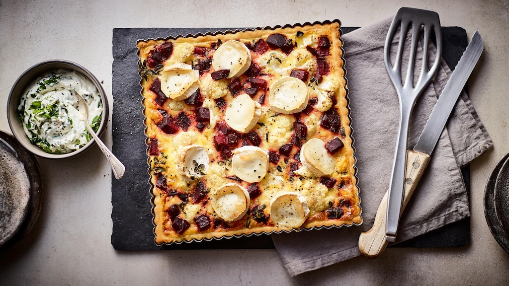 Rote Bete mal anders. Kombinieren Sie die Rübe mit würzigem Ziegenkäse, knackigem Gemüse sowie frischen Kräutern und bereiten Sie mithilfe unseres Rezepts eine herzhafte Rote-Bete-Tarte zu. Ein Genuss – nicht nur im Herbst!