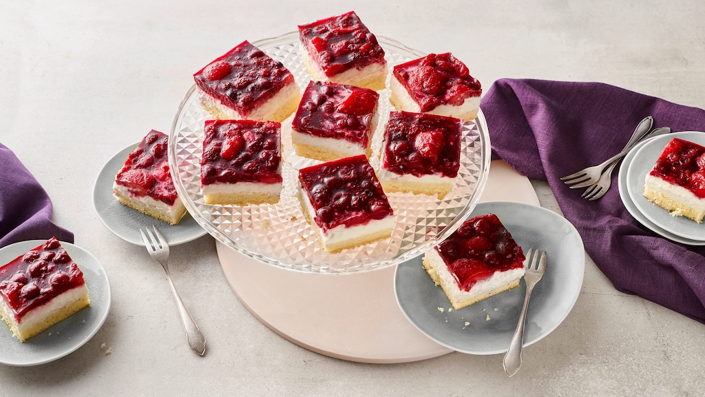 Steht Ihnen heute nicht so der Sinn danach, den Ofen anzuwerfen, probieren Sie stattdessen unseren Kuchen ohne Backen: Auch in diesem Rezept sorgt Rote Grütze für erfrischenden Genuss!