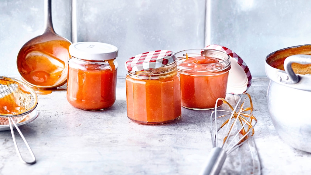 Sanddornmarmelade noch heiß in sterilisierte Twist-off-Gläser füllen. Für 5 Minuten auf dem Deckel stehen lassen, dann umdrehen und vollständig abkühlen lassen.