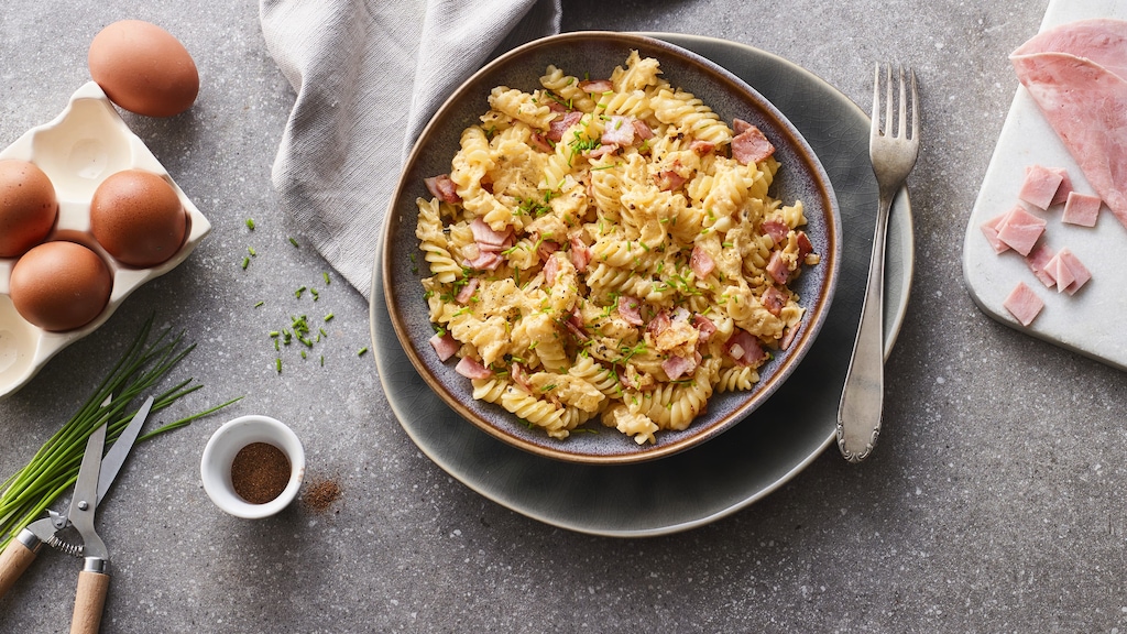 Unser Rezept für Schinkennudeln mit Ei ist einfaches Comfort Food, das Sie schnell zubereiten können und über das sich die ganze Familie freut. Viel Spaß beim Nachkochen!