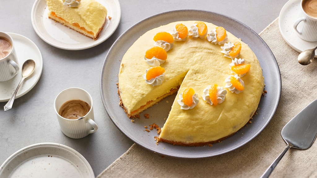 Heraus kommt eine feste Creme, die sich wunderbar auf dem Biskuitboden verteilen und zu einer Kugel aufhäufen lässt. Gekrönt wird das Ganze mit Sahnetupfer und Mandarinen, die sie natürlich auch für unser Mandarinen-Dessert nutzen. Den Biskuitboden können Sie fertig kaufen, aber natürlich auch selbst backen: Mit Eiern, Zucker, Mehl, Speisestärke, Backpulver und Mineralwasser zaubern Sie Biskuitböden für fruchtige Torten oder raffinierte Rollen, wie z. B. unsere Zitronen-Biskuitrolle oder eine Erdbeer-Mascarpone-Torte.