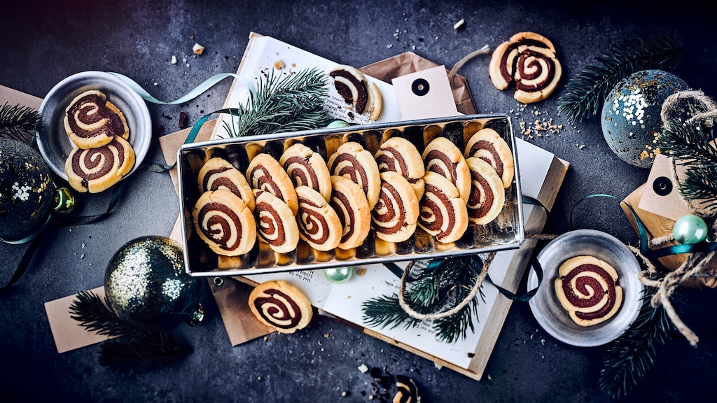 Knusprige Plätzchen in tollen Mustern und Marmorierungen: Schwarz-Weiß-Gebäck ist ein Klassiker des deutschen Keks-Kanons. Jeder kennt das Weihnachtsgebäck mit Schwarz-Weiß-Muster. In manchen Regionen sind die weihnachtlichen Plätzchen als Schachbrettkekse oder Briskeln bekannt. Basis des zweifarbigen Backwerks ist ein einfacher Mürbeteig wie bei unserem Bärentatzen-Rezept. Die unterschiedlichen Farben entstehen durch die Zugabe von Kakao in eine Hälfte des Teiges. Lassen Sie beim Kneten und Formen Ihres Schwarz-Weiß-Gebäcks Ihrer Kreativität freien Lauf! Zweifarbige Kekse gibt es mit Schachbrettmuster, mit Streifen, Kreisen oder Spiralen oder im Zufallsdesign, für das Sie alle Teigreste zusammenkneten und verarbeiten. Diese Version kennen Sie unter dem Begriff der Marmor-Kekse. Bei unseren Schwarz-Weiß-Schnecken rollen Sie dünne Teigschlangen miteinander auf. Egal, wie Sie die Kekse gestalten, lecker sind sie in jedem Fall! Einen ähnlichen Schwarz-Weiß-Effekt erzielen Sie auch mit unserem Heidesand-Rezept, bei dem zwei Teige für eine einzigartige Marmorierung sorgen. Probieren Sie auch unsere knusprigen gerollten Schweineohren mit karamellisiertem Zucker aus!