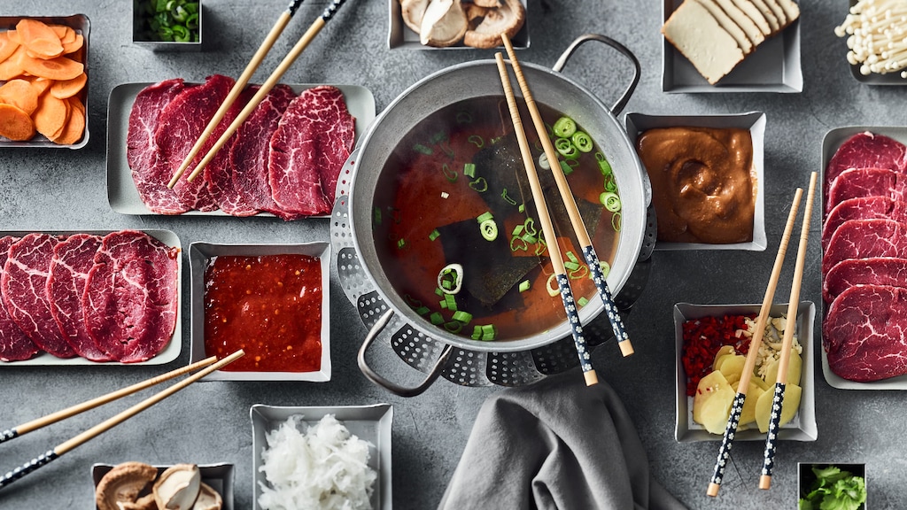 Übrigens: Auch für ein weiteres japanisches Hot-Pot-Gericht haben wir das passende Rezept. Anders als Shabu Shabu setzen Sie Sukiyaki mit Sojasoße an. So wird die Suppe dunkler und dicker. Außerdem wird das Fleisch vor Gemüse und Brühe zubereitet – und während Shabu Shabu auf Nudeln verzichtet, sind sie fester Bestandteil von traditionellen Sukiyaki-Rezepten.
