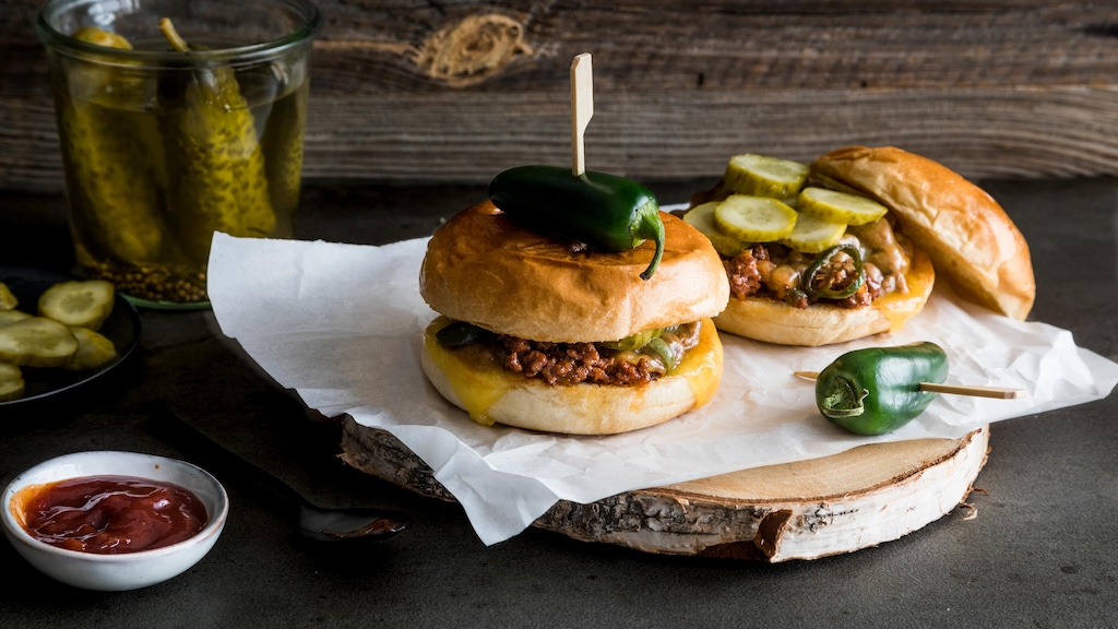 Die Zubereitung des Sloppy Joes ist recht einfach und geht schnell von der Hand. Wichtig ist vor allem die Zubereitung der Hackfleischsauce. Diese sollte am Ende schön „klebrig“ sein, damit diese sich zwischen den Burgerbrötchen verteilt und sich nicht beim zusammendrücken verflüssigt. Zubereitet wird die Sauce mit Ketchup, Barbecue- und Worcestershire-Sauce sowie schmackhaftem Paprikapulver. Ganz zum Schluss wird der Burger noch mit Bergkäse garniert, der hervorragend das Geschmackserlebnis abrundet. Die besondere Note bekommt der Sloppy Joe durch die Zugabe der Jalapenos, die am Ende mit Holzspießen auf den Burger gesteckt werden. Sie werden sehen, beim ersten Biss in diesen schmackhaften Burger werden Sie nicht genug davon bekommen. Als Beilage eignen sich wunderbar Pommes Frites oder auch ein frischer Salat. Wenn Sie Ihrer Familie, Ihren Freunden oder einfach sich selbst gerne eine Freude machen wollen, dann probieren Sie sich durch unsere Burger-Rezepte! Hier finden Sie neben dem Sloppy Joe auch weiter vielseitig kombinierbare Kochideen, die Sie begeistern werden. EDEKA wünscht viel Spaß beim Kochen!