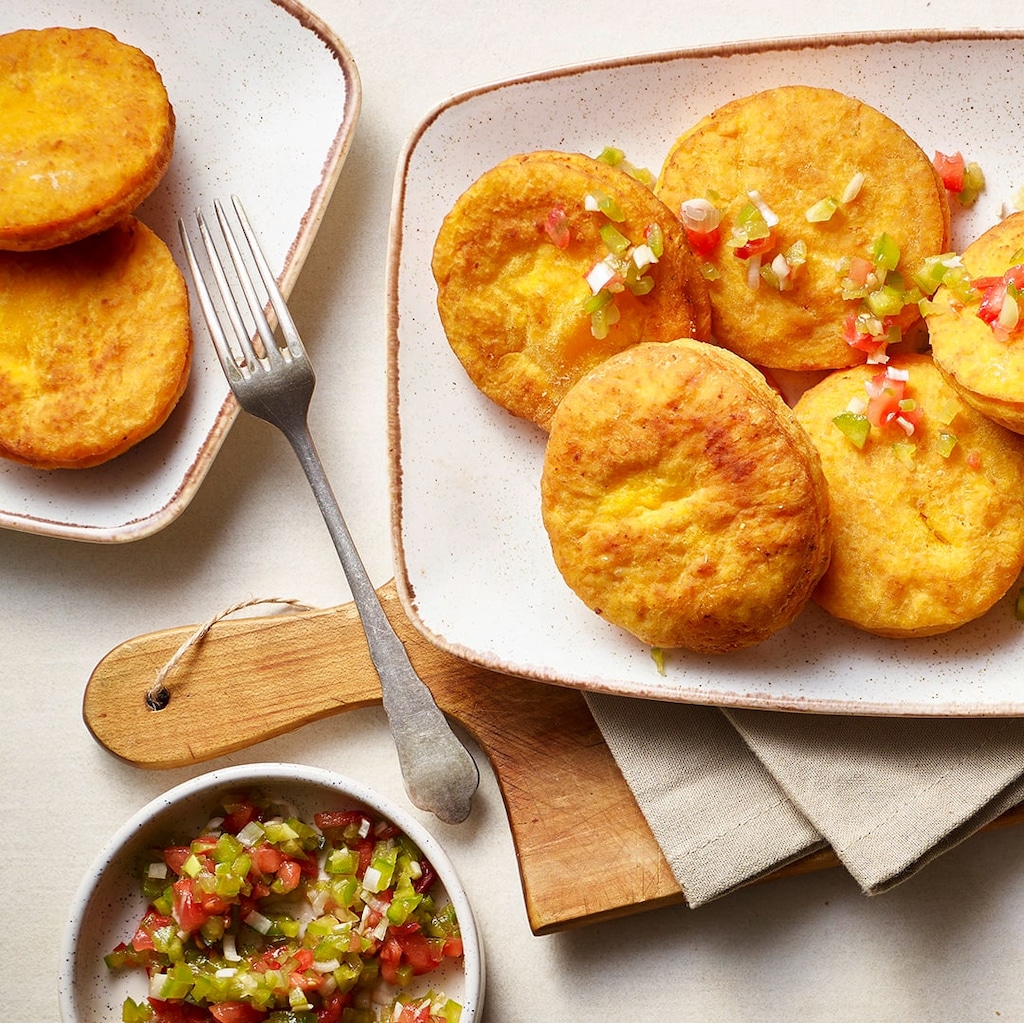 Sopaipillas können süß mit Apfelmus oder herzhaft mit einer Salsa serviert werden.