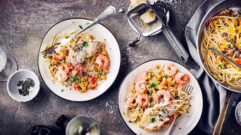 Sie lieben Meeresfrüchte? Mit unserem Rezept für Spaghetti alla Chitarra kochen Sie ein Pasta-Gericht mit kräftiger Kürbissauce, gebratenen Rotbarbenfilets und Garnelen. Für den Kauf der Meeresfrüchte geben wir wertvolle Tipps.