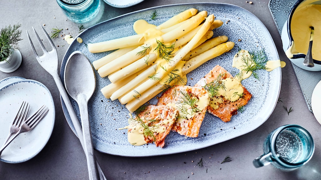 Zartes Stangengemüse, frischer Fisch und eine Sauce hollandaise, die mit Joghurt und Weißwein gekocht wird: Mit unserem Rezept bereiten Sie feinen Spargel mit gebratenem Lachsfilet in knapp einer Stunde zu!