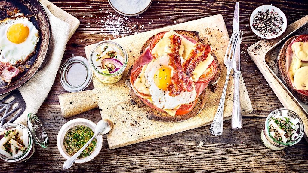 Vereinen Sie gekochten Schinken, knuspriges Brot, Eier und Tomaten zu einer deutschen Delikatesse & kochen Sie unser Rezept für strammen Max mit Salat nach.