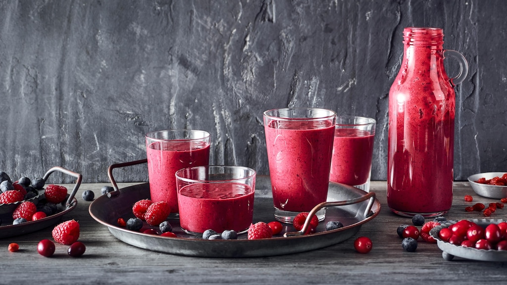 Unser Tipp für einen gehaltvollen Drink: Probieren Sie den Superfood Smoothie mit verschiedenen Beeren, Mandelmilch und Soja-Joghurt – erfrischend lecker!