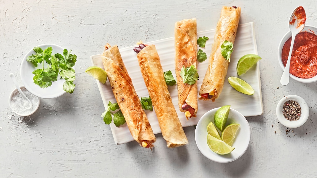 Tortillas, die dünnen Fladen aus Weizen- oder Maismehl, sind für viele Spezialitäten der mexikanischen Küche bekannt. Da sind zum einen die Tacos, kleine, in der Mitte gefaltete Tortillas, meist aus Maismehl. Sie werden mit verschiedenen Zutaten wie Fleisch, Gemüse und Salsa gefüllt. Als knusprige Variante davon gibt es die Taco Shells. Burritos sind in der Regel größer als Tacos, oft mit Reis, Bohnen, Fleisch, Gemüse, Käse und Salsa gefüllt und gerollt. Quesadillas sind weniger gefüllt als Burritos und flachgedrückt in der Pfanne gebraten. Enchiladas bestehen aus weichen gefüllten Mais-Tortillas, die mit einer würzigen Soße übergossen und im Ofen überbacken werden. Die Zutaten für Fajitas – oft dünne Streifen Rindfleisch, gegrilltes Gemüse und Salsa – kommen in heißen Pfannen auf den Tisch. Die Tortillas werden separat dazu serviert. Für Taquitos, unser Rezept, werden Tortillafladen gefüllt, aufgerollt und frittiert. Flautas heißen mexikanische frittierte Tortillaröllchen, die größer und dünner sind als Taquitos. Flauta-Rezepte werden mit Weizen- oder Maismehlfladen zubereitet, Taquitos meist mit Maismehl-Tortillas.