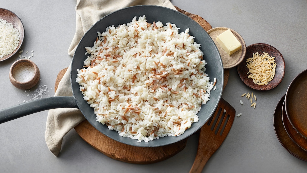 Luftiger Reis, der aromatisch duftet und mit einer leicht nussigen Note besticht: Der in Butter angebratene und schonend gedämpfte Reis ist ein Herzstück der türkischen Esskultur. Ob als Beilage zu deftigen Gerichten oder pur mit Joghurt und Zitrone – probieren Sie es aus!