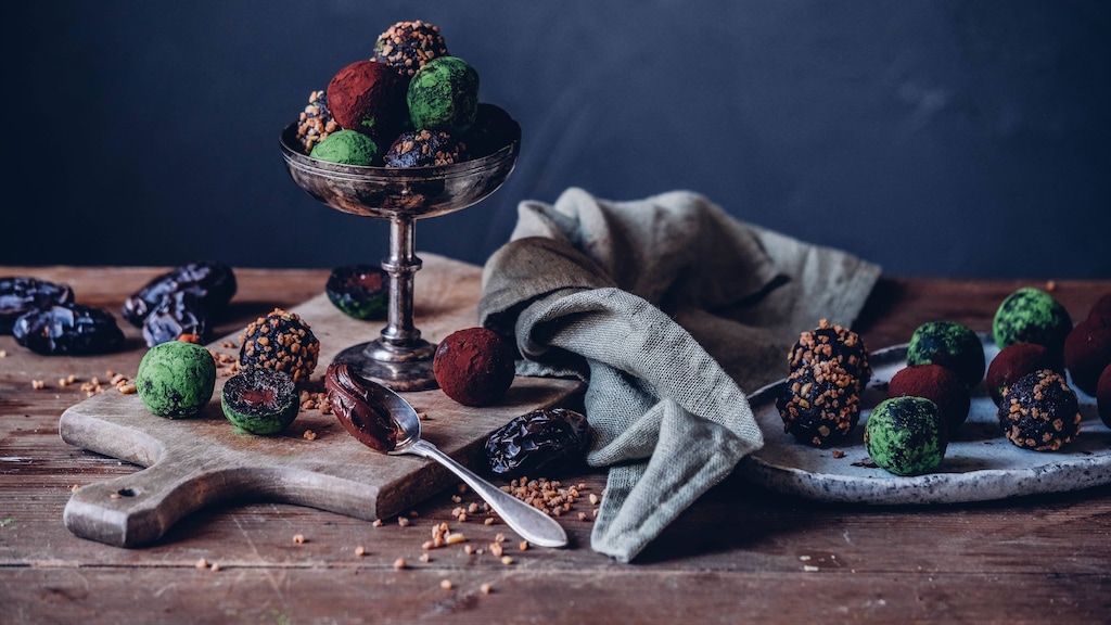 Sie mögen keine Datteln? Nehmen Sie einfach dieselbe Menge Rosinen oder Trockenpflaumen. Bliss Balls lassen sich ganz einfach individuell abwandeln. Statt zu Haselnusscreme können Sie auch zu zuckerfreiem Erdnuss- oder Mandelmus oder Tahini greifen. Sie möchten noch mehr Nährstoffe und Antioxidantien? Ergänzen Sie die Basis aus Obst und gemahlenen Nüssen einfach um weitere Zutaten oder wälzen Sie Ihre Kugeln abschließend darin. Passend sind Haferflocken, Chiasamen, Sesam oder Sonnenblumen- und Kürbiskerne. Für Extra-Exotik sorgen Kokosflocken oder Fruchtpulver. Und raffinierter schmeckt jedes Bliss-Balls-Rezept mit Datteln dank Zitronen-, Orangen- oder Mandarinenzeste. Und falls Sie die Kugeln in gehackten Nüssen Ihrer Wahl wälzen möchten: Rösten Sie diese vorher in der Pfanne! Das ist auch ein guter Tipp für die Verzierung unserer Nougatringe. Auch unsere Spekulatius-Kugeln oder Nougatkipferl lassen sich zur Abwechslung in Nüssen wälzen.