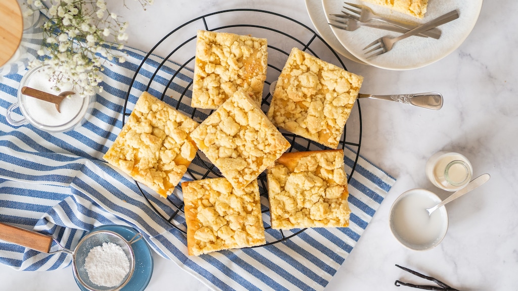 Mit seinem fluffigen Hefeteigboden und dem knusprigen Belag gehört der Streuselkuchen zu den beliebtesten Leckereien vom Blech. Die Mischung aus weich und knackig ist einfach unwiderstehlich und lässt sich auch ganz ohne tierische Produkte erreichen. Dafür sind weder exotische Zutaten noch langwierige Arbeitsschritte erforderlich. Lediglich 15 Minuten verbringen Sie damit, den Hefeteig und die Streusel herzustellen. Ansonsten geht und backt der Teig alleine. Wer sich die Wartezeit für das Aufgehen sparen möchte, verwendet für den veganen Streuselkuchen anstelle des Hefeteigs einen Rührteig.