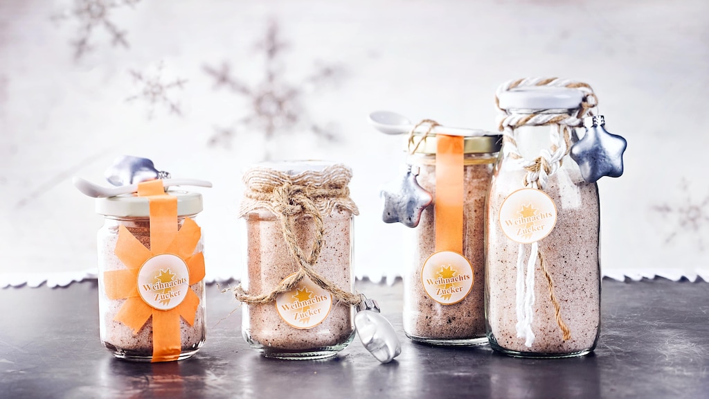Duftende Gewürze gehören zum Advent wie der Tannenbaum und die Weihnachtslieder. Sie werden verwendet, um Gebäck wie Magenbrot, Kuchen, Tee, Kaffee und Süßspeisen zu veredeln – und natürlich auch für den traditionellen Glühwein. Tauchen Sie in unsere Rezeptwelt Weihnachten ein! Wer unser Weihnachtszucker-Rezept zubereitet, ist bestens gewappnet und spart sich wertvolle Zeit beim Kochen und Backen. In Schraubgläser gefüllt und mit hübscher Schrift oder weihnachtlichen Motiven verziert, eignet sich der aromatisierte Zucker auch perfekt als selbst gemachtes Geschenk. Die Zutaten, die Sie außer dem Zucker benötigen, sind eine Stange Zimt, ein Anisstern, eine Kardamomkapsel, Nelken, Pimentkörner, eine halbe Vanilleschote sowie Orangen- und Zitronenabrieb. Achten Sie unbedingt darauf, unbehandelte Orangen und Zitronen zu kaufen, deren Schalen frei von Pestiziden sind! Die Weihnachtsgewürze werden zunächst im Mörser zerstoßen und der Abrieb getrocknet. Zusammen mit dem aus der Schote gekratzten Vanillemark und dem Zucker wird alles gemixt, bis ein feiner Puderzucker entsteht, der noch durch ein feines Sieb geschüttet werden sollte. Den fertigen Weihnachtszucker können Sie zum Verfeinern vieler Speisen verwenden oder einfach nur Ihren Tee damit süßen. Und wenn Sie ein Fan weihnachtlicher Aromen sind, sollten Sie auch unbedingt unser Rezept für selbst gemachtes Lebkuchengewürz ausprobieren!