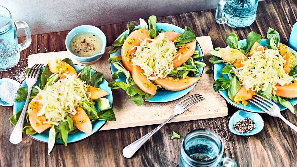 Zum Grillen, zur Brotzeit, beim Griechen – Krautsalat hat überall seine Berechtigung. Sogar als Hauptspeise. Die gelingt, wenn Sie sich an unser Weißkrautsalat-Rezept halten und den einfachen Salat mit Melone und Maracuja servieren.