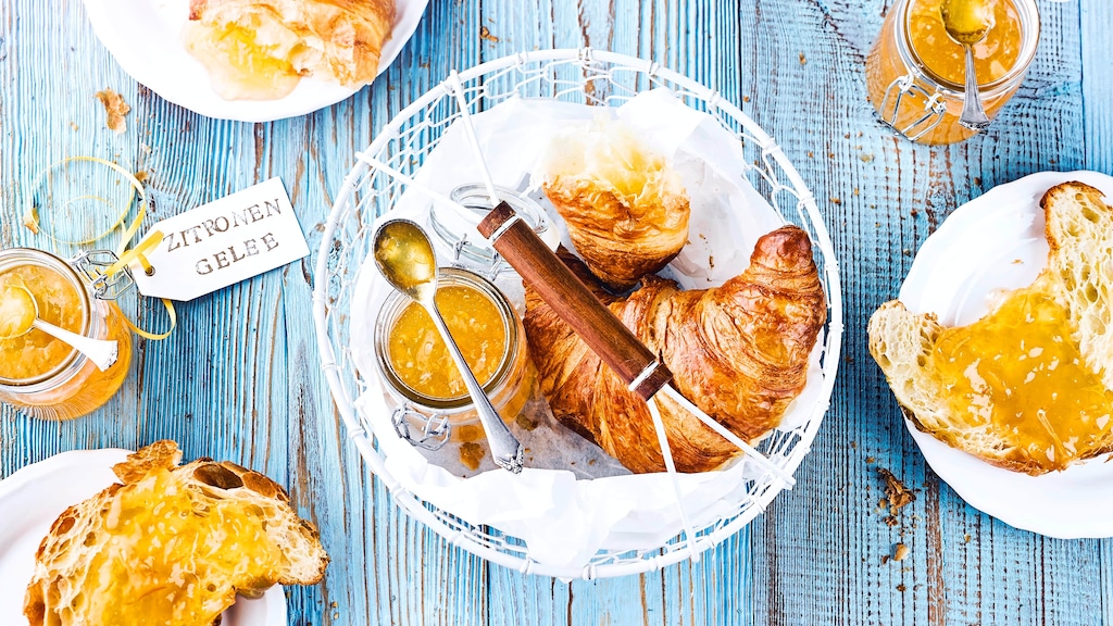 Für unser Zitronengelee-Rezept benötigen Sie nur drei Zutaten, einen Kochtopf und 15 Minuten Zeit! Das süß-säuerliche Gelee veredelt zum Beispiel Brot, Brötchen, Süßgebäck, Joghurt und Salat-Dressings.