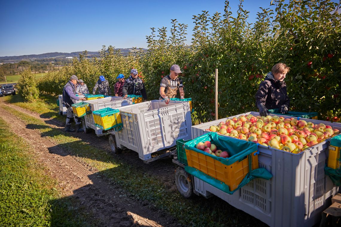 Auf insgesamt 60 Hektar baut die Gut Bodmann Ledergerber Obstbau GbR bestes Tafelobst in der Bodenseeregion an. Der Betrieb entstand 2014 aus einer Fusionierung der beiden großen Obstbaubetriebe in Bodman im Landkreis Konstanz. Beide waren zuvor bereits in dritter Generation erfolgreich bewirtschaftet worden und schöpfen nun gemeinsam ihre Synergieeffekte voll aus. Der Obstbaubetrieb beschäftigt insgesamt fünf fest angestellte Mitarbeiterinnen und MItarbeiter und zur Erntesaison zusätzlich 50 bis 60 Saisonkräfte. Über die Erzeugerorganisation Bodenseeobst wird EDEKA Südwest bereits seit vielen Jahren mit Bio-Äpfeln aus der Region beliefert. Seit 2018 ist der Bodmaner Betrieb Mitglied im Demeter-Anbauverband und seine Äpfel werden als Demeter Bio-Äpfel unter der Regionalmarke „Unsere Heimat – echt & gut“ in den Märkten der EDEKA Südwest vermarktet.